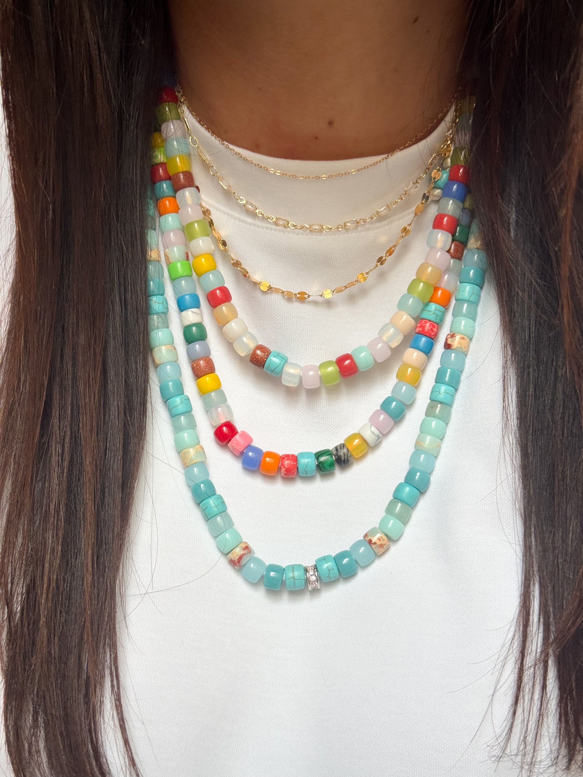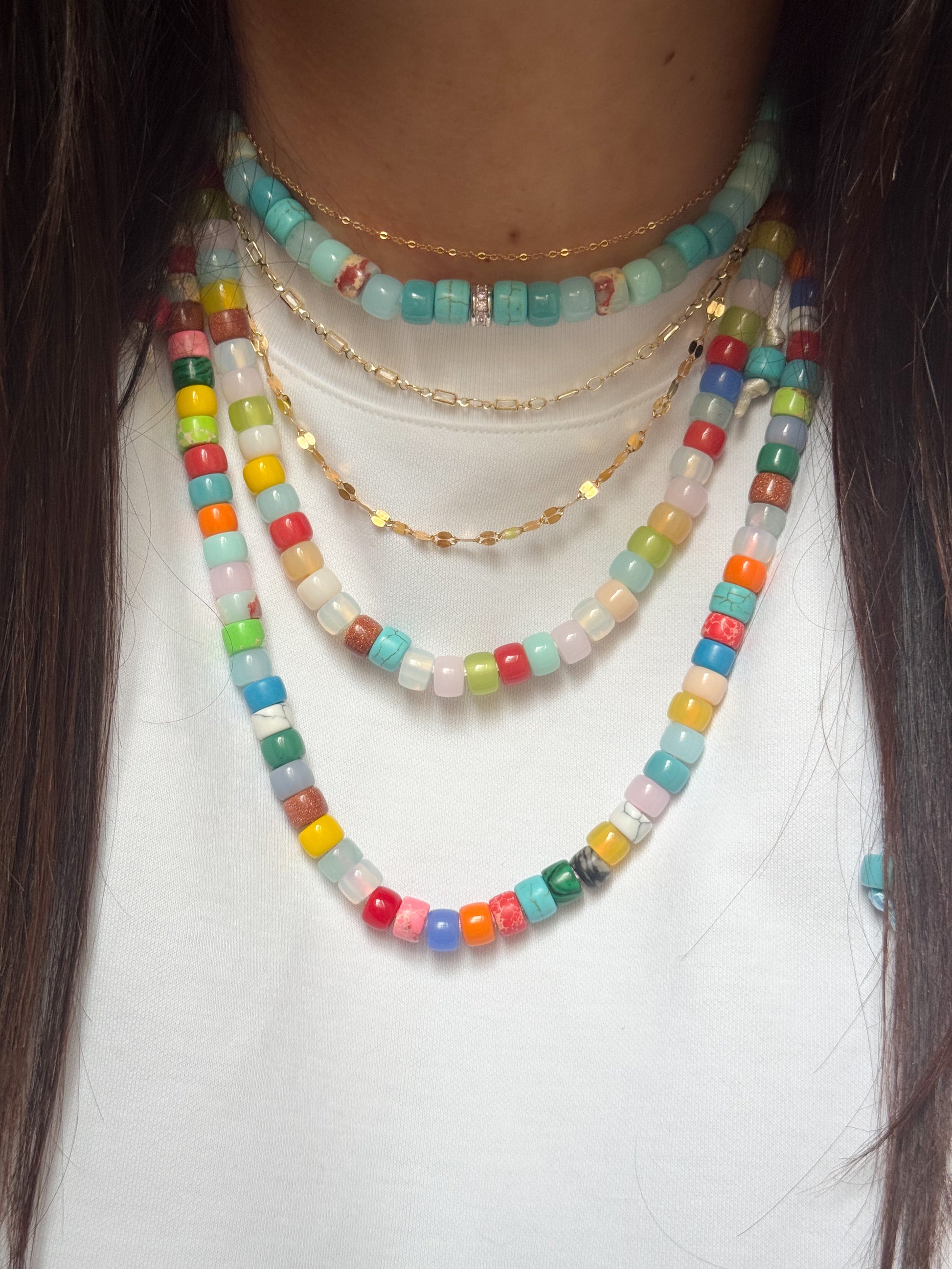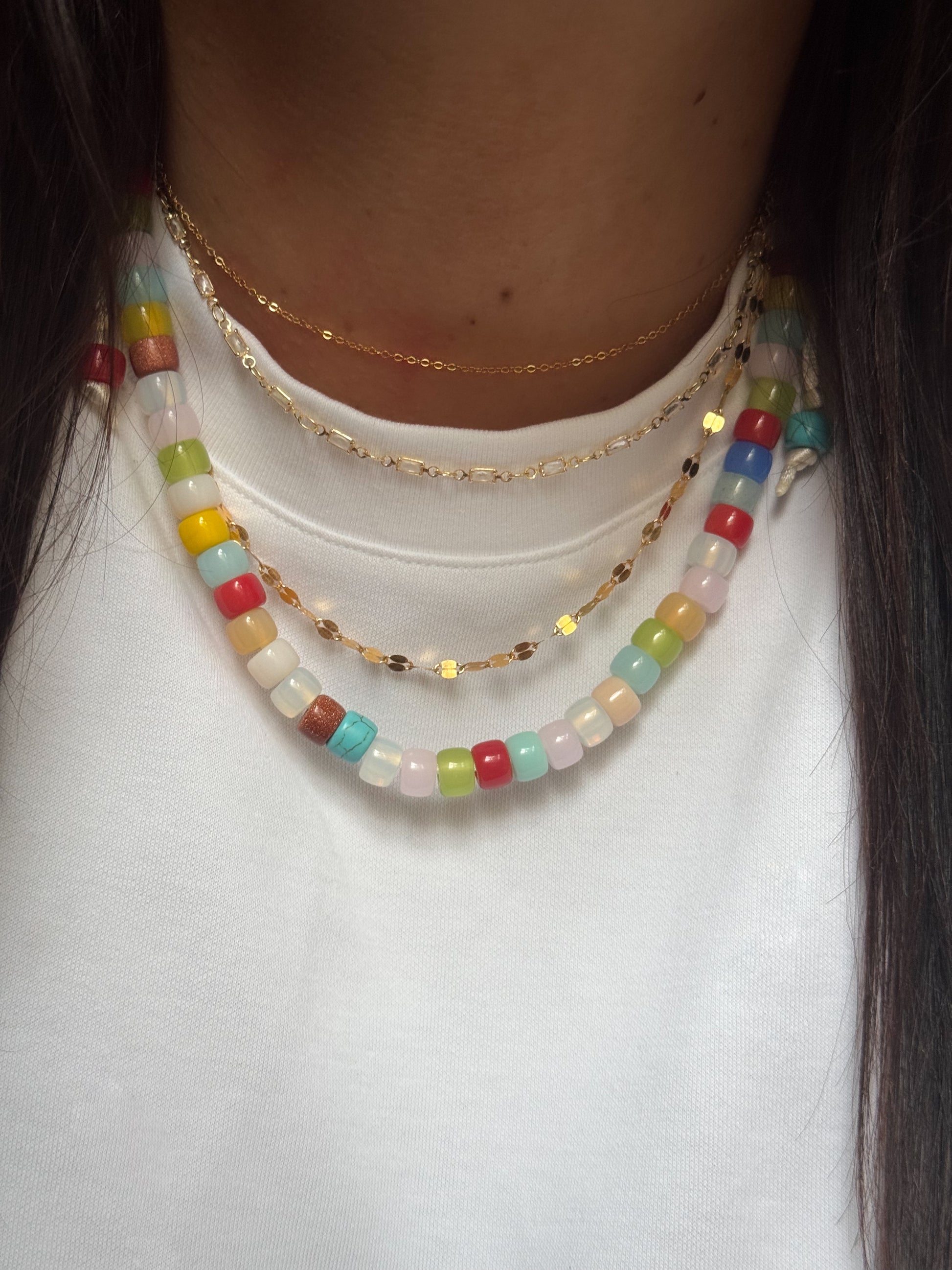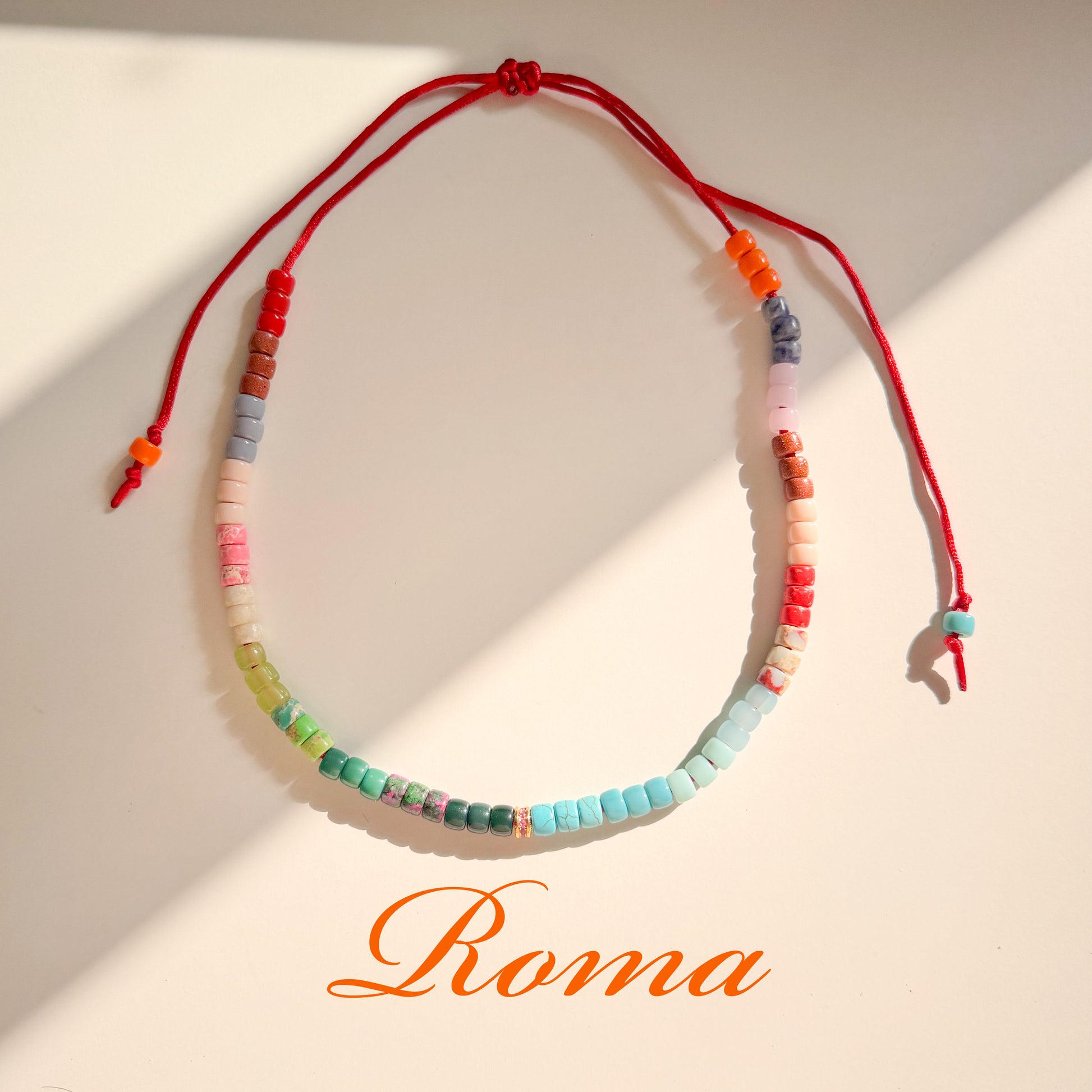 creazioni uniche con pietre semipreziose, ogni bracciale è composto da circa 30 pietre ciascuno. ogni braccialetto ha il nome di una città importante e ogni braccialetto ha dettagli speciali diversi dagli altri. puoi trovare la collana abbinata con gli stessi colori nella categoria collana sul nostro sito web. il cordino puoi adattarlo alla tua taglia.
