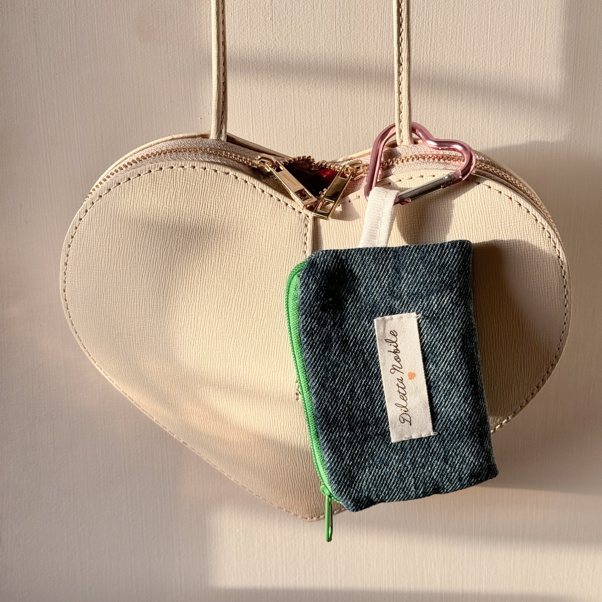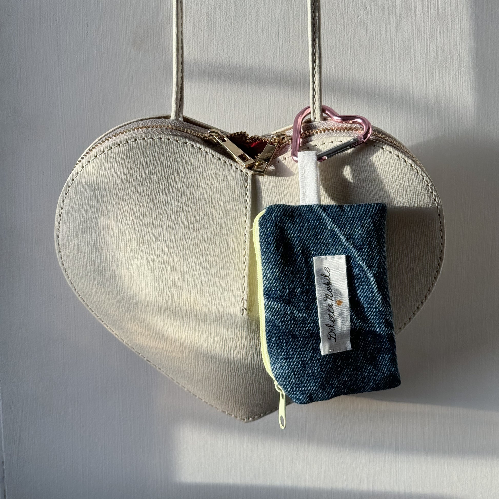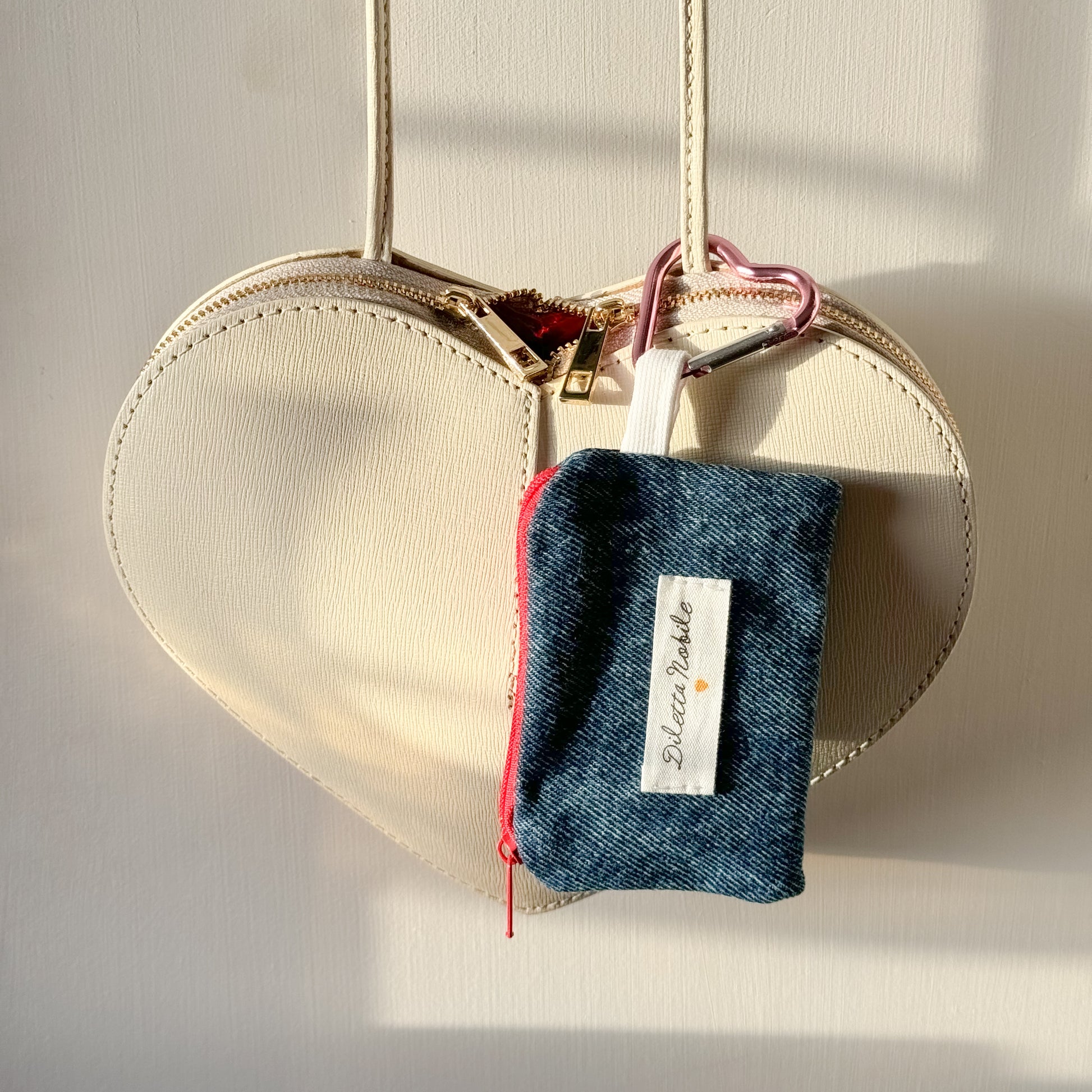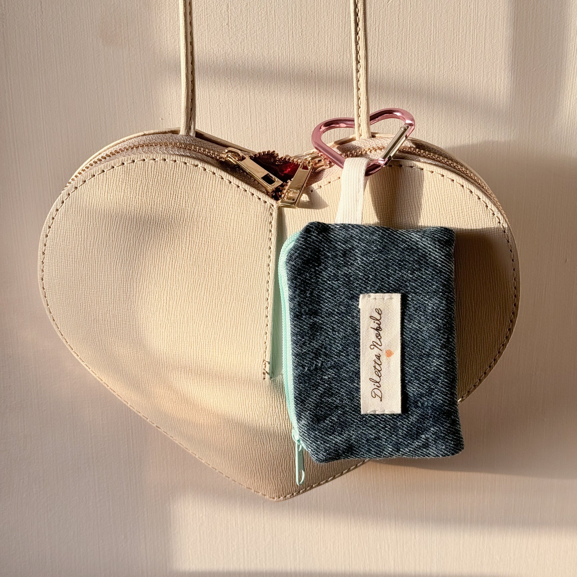 Small wallets for Keychain completely handmade by artisan hands, jeans and cotton and contrasting zip