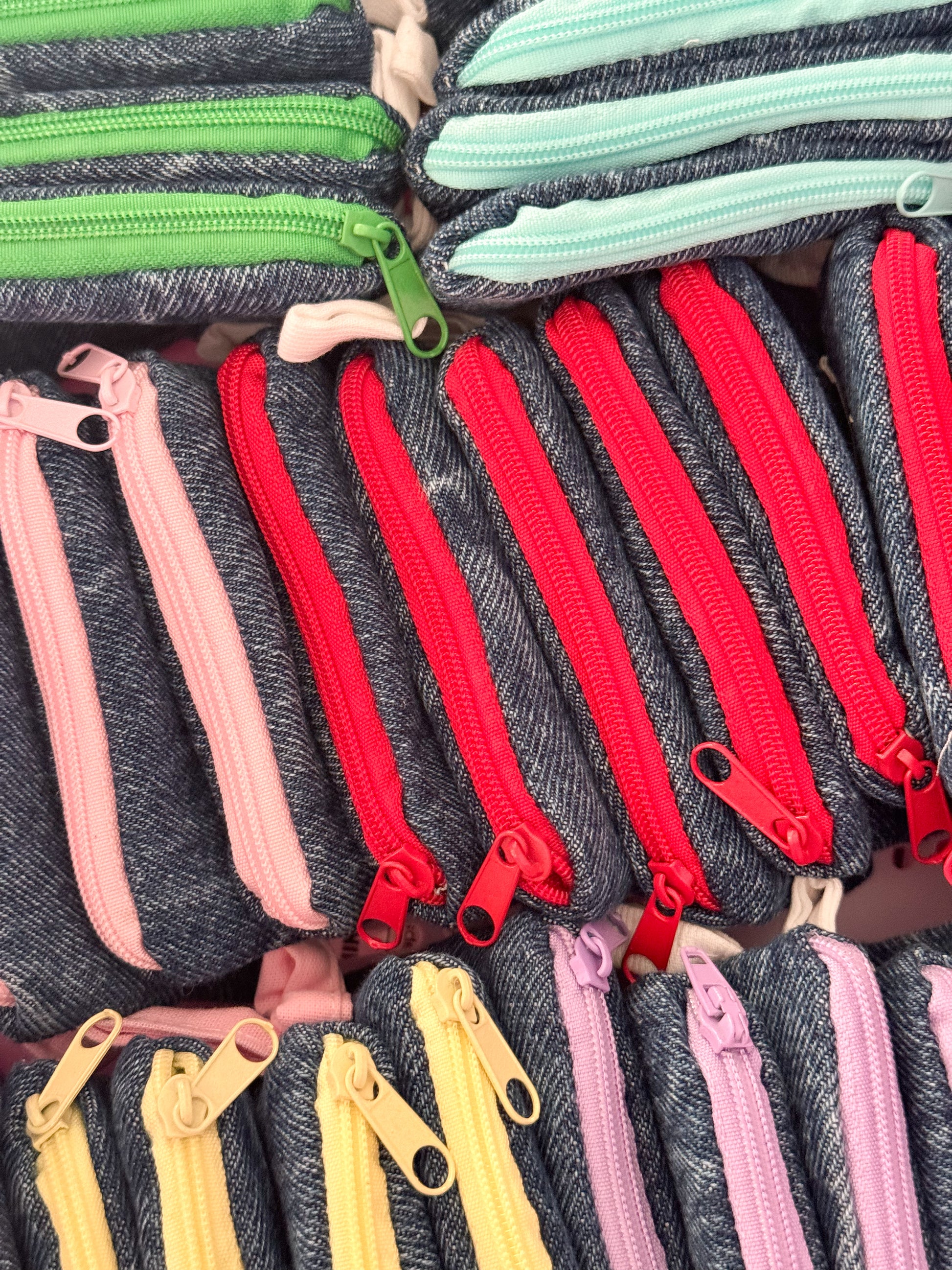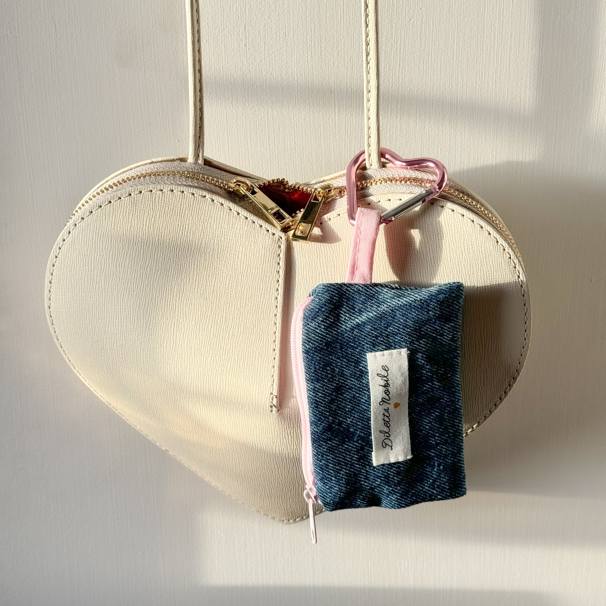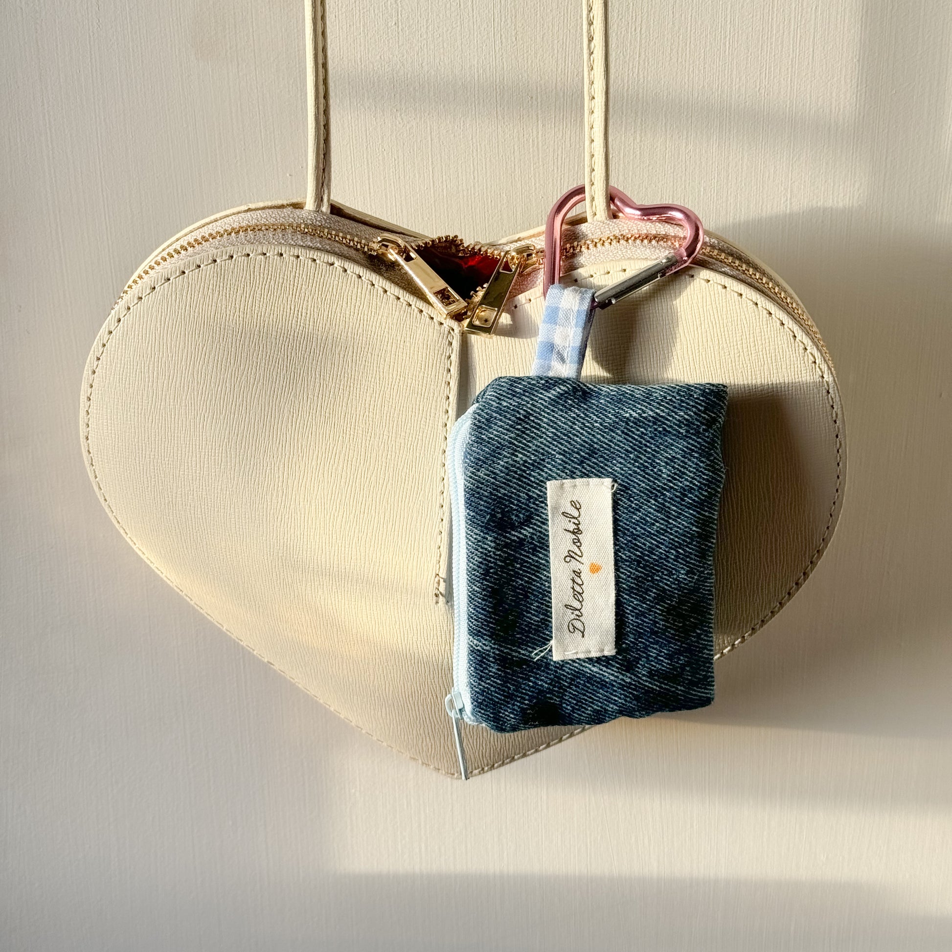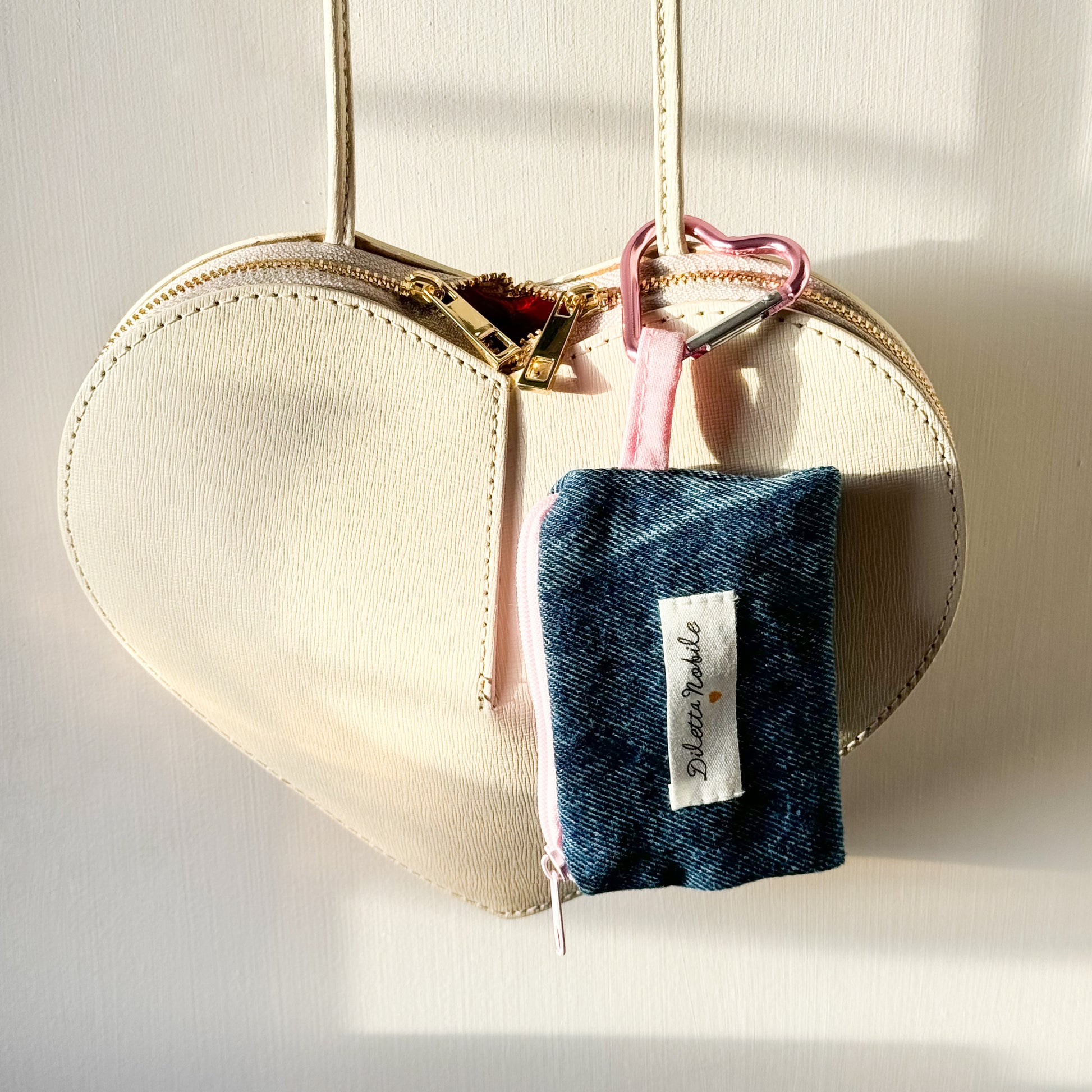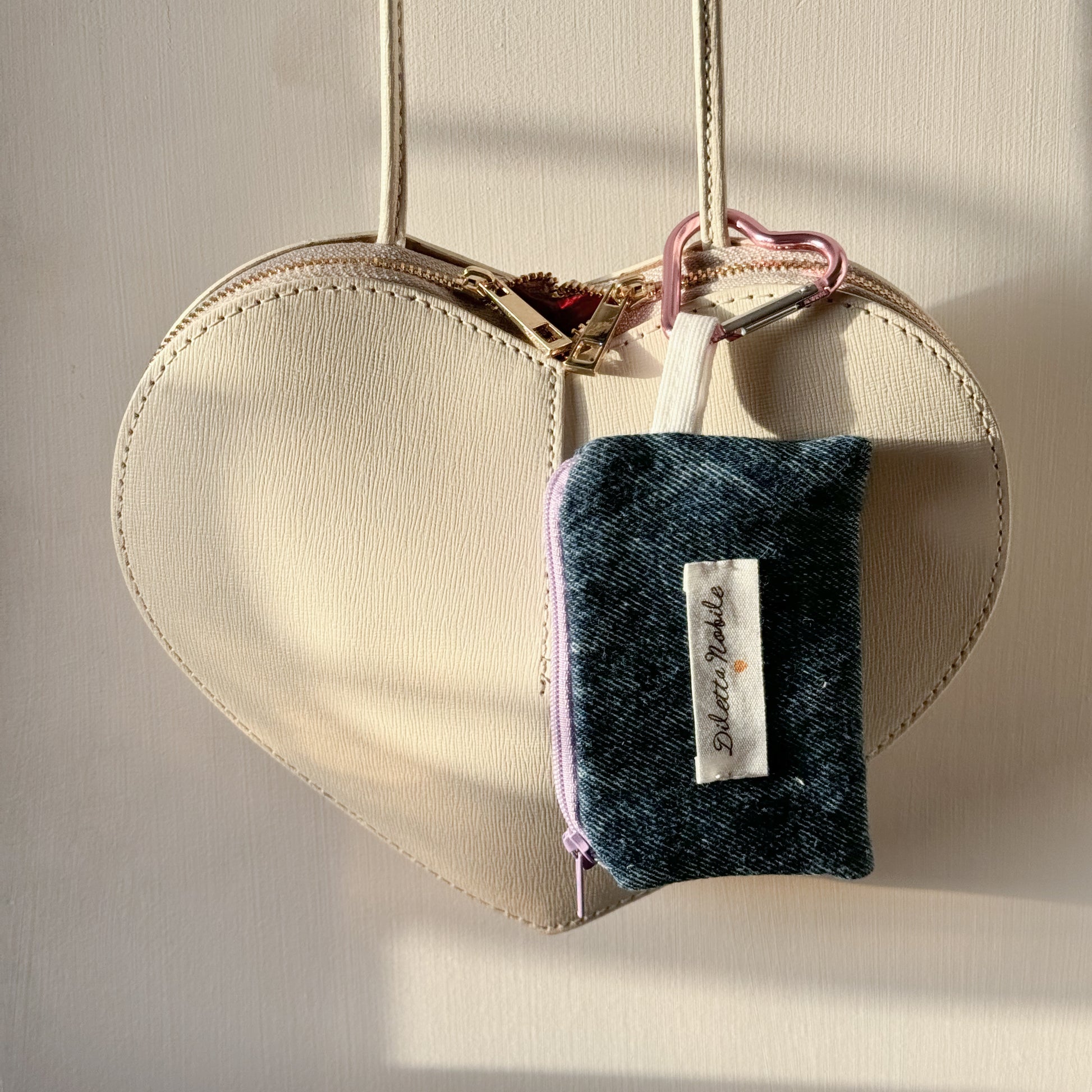 Small wallets for Keychain completely handmade by artisan hands, jeans and cotton and contrasting zip